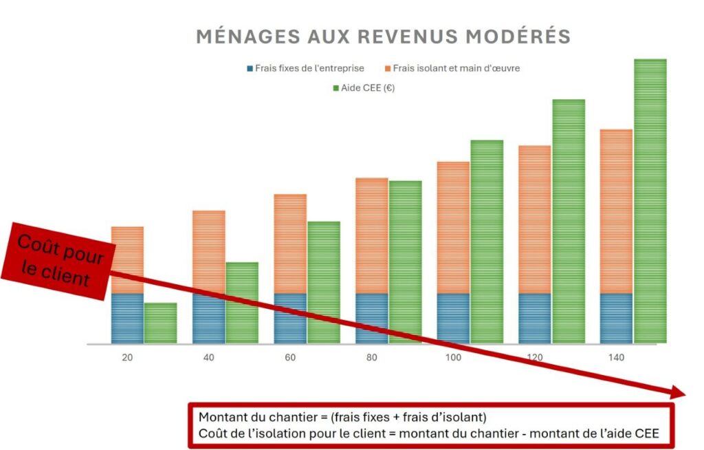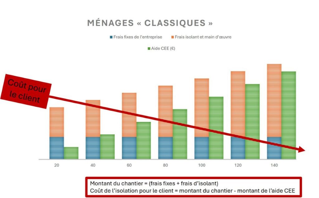 Coût du chantier = frais fixes de l’entreprise + frais du chantier. Ce montant ne peut pas être « 1€ ». Toutefois, une aide appelée Certificat d’Économie d’Énergie vient se déduire du montant du chantier. En fonction du montant de l’aide, le coût pour le client peut-être de « 1€ symbolique » dans certains cas. Pour bien comprendre :